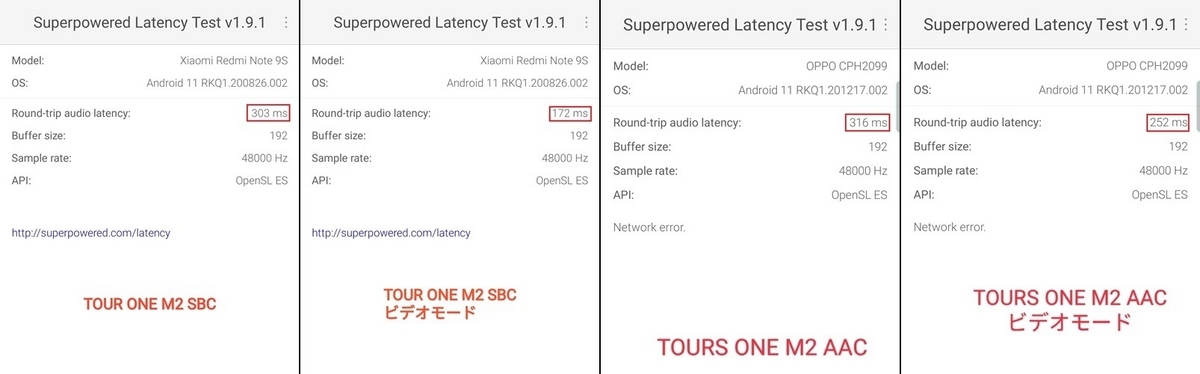| 通常時 | 251ms(SBC) | 264ms(AAC) |