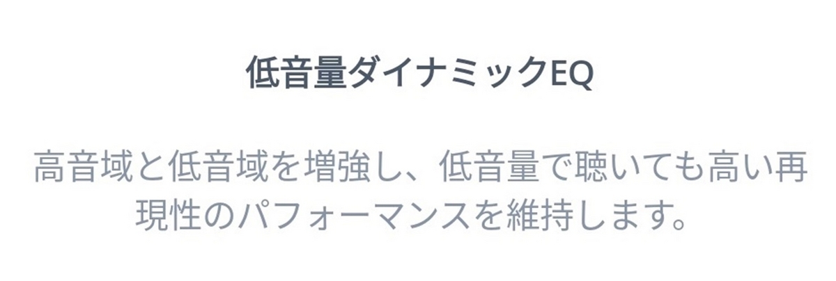 低音量でもしっかりと芯のあるサウンドが聴けるようになります。