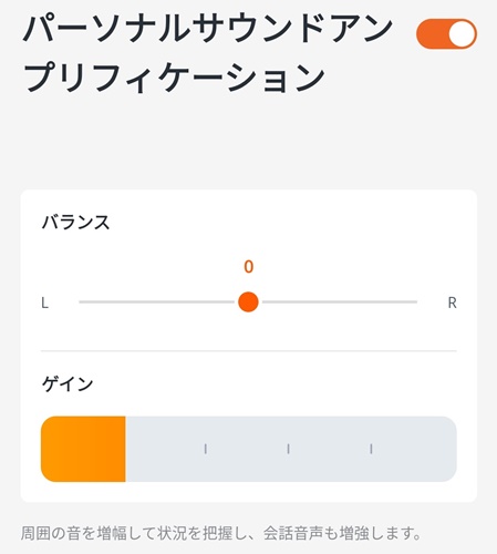 左右バランスを調整できるところもただの外音取り込み機能とは違うところですね。